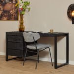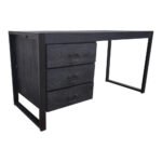 Dit bureau komt uit onze Boaz Black serie en is voorzien van drie lades. Het bureau is uitgevoerd in massief mangohout en metaal. Het mangohout is behandeld met zwarte lak.