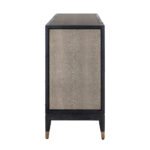 Dressoir Bloomingville heeft vier deuren en biedt genoeg opbergruimte voor al je spullen! De Bloomingville collectie is een verfijnde, luxe collectie gemaakt van segrijn / faux roggehuid van PU leer, zwart eiken en mat gouden details van metaal. Segrijn was populair in de Art Deco periode rond 1920 en geeft je moderne interieur een unieke touch!