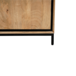Dressoir RichWood is uitgevoerd in gelakt mangohout in combinatie met een zwart gelakt metalen frame. Dit model is voorzien van drie deuren en drie lades. Het dressoir is ingelegd met verschillende stroken hout, waar het meubel zijn eigentijdse karakter aan te danken heeft.