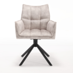 Eetkamerstoel Dani Velvet Champagne is bekleed met velvet-stof. De stoel is 180 graden draaibaar en heeft een return memory functie. De stoel is voorzien van een metalen zwarte poot.