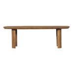 De eetkamertafel Maré is volledig uitgevoerd in massief mango hout in een walnoot-kleur en heeft twee half ronde poten.
