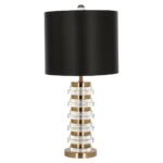De Tafellamp Leonore is een verfijnde en luxueuze toevoeging aan elk interieur, waarin de tijdloze schoonheid van metaal en kristal wordt gecombineerd. Deze lamp heeft een elegant metalen frame dat zowel duurzaamheid als een moderne uitstraling biedt. Het hoogtepunt van de Leonore is echter het gebruik van kristal, dat een extra dimensie van schittering en klasse toevoegt. De kristallen elementen vangen het licht op betoverende wijze, waardoor een sprankelend en sfeervol effect ontstaat.