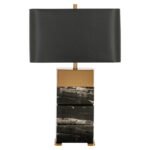 De Tafellamp Serena is een stijlvolle combinatie van hedendaagse elegantie en klassieke materialen. Deze lamp onderscheidt zich door haar goudkleurige metalen frame, dat een warme en luxueuze uitstraling biedt. De toevoeging van marmeren details verhoogt de rijke en verfijnde sfeer, waardoor de Serena een gevoel van tijdloze klasse uitstraalt.