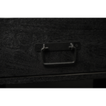 Vakkenkast Boaz Black is uitgevoerd in het mangohout. Het metalen frame en de metalen handgrepen zijn afgewerkt met een zwarte lak. Dit model is voorzien van vier lades, twee deuren en diverse openvakken. Achter de deuren zitten handige legplanken. De vakkenkast is ingelegd met verschillende stroken zwart gelakt hout, waar het meubel zijn eigentijdse karakter aan te danken heeft.