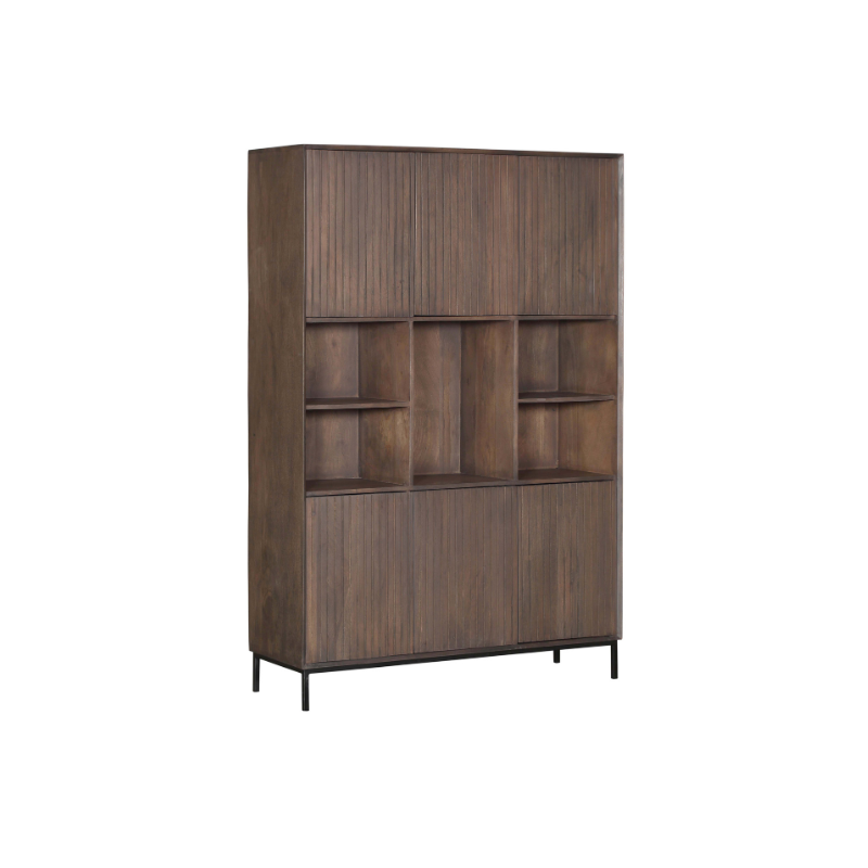 Vakkenkast XL ‘Madison’ is gemaakt van mangohout. Het metalen frame is afgewerkt met een zwarte lak. Dit model is voorzien van zes deuren en vijf openvakken. De deuren zijn voorzien van een verticaal lattenpatroon en is afgewerkt met een walnoot finish.