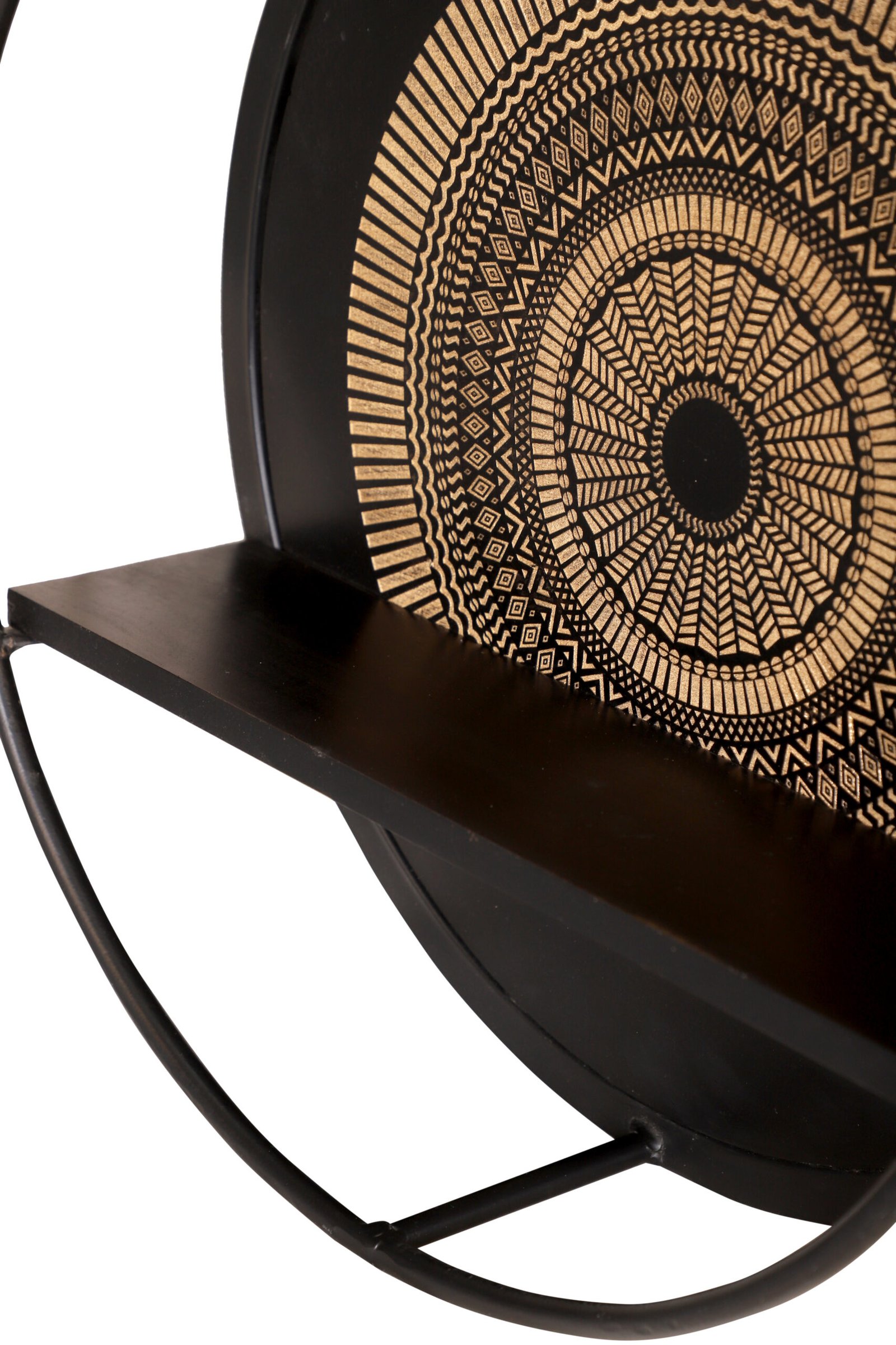 Wandrek Mae is gemaakt van massief zwart gelakt hout. De achterwand is voorzien van een houtsnijwerk . Het metalen frame is afgewerkt met een zwarte lak.