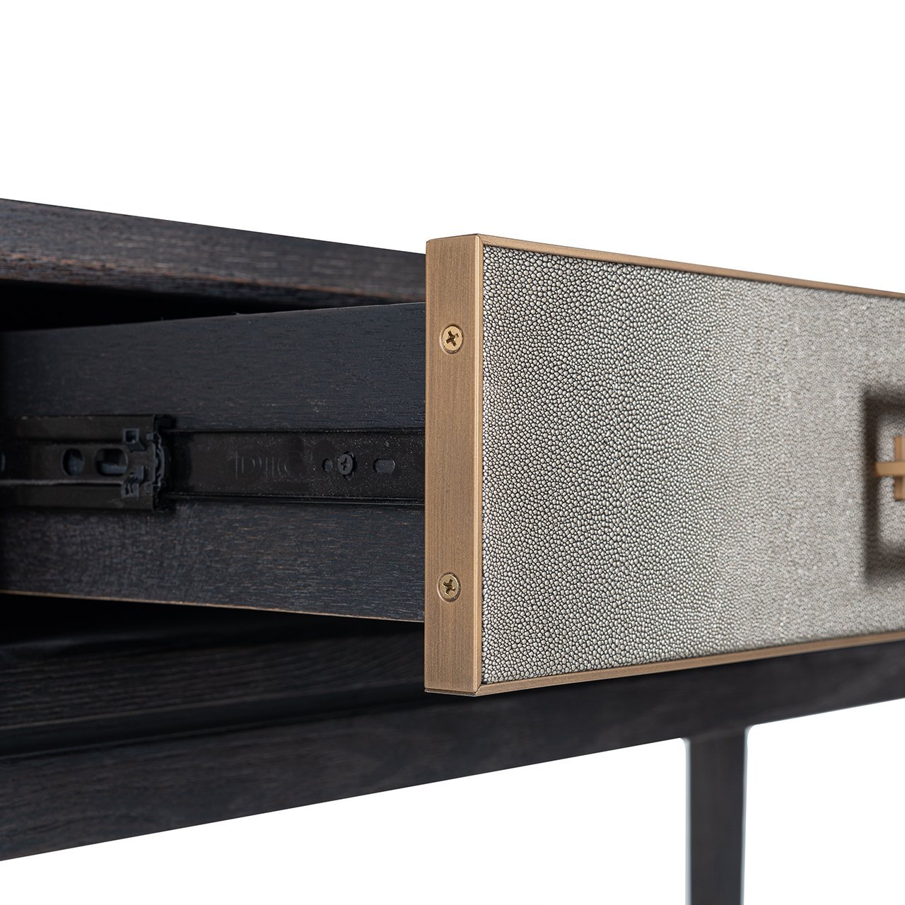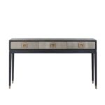 Wandtafel Bloomingville 3-laden maakt jouw woonkamer helemaal af! De Bloomingville collectie is een verfijnde, luxe collectie gemaakt van segrijn / faux roggehuid van PU leer, zwart eiken en mat gouden details van metaal. Segrijn was populair in de Art Deco periode rond 1920 en geeft je moderne interieur een unieke touch!