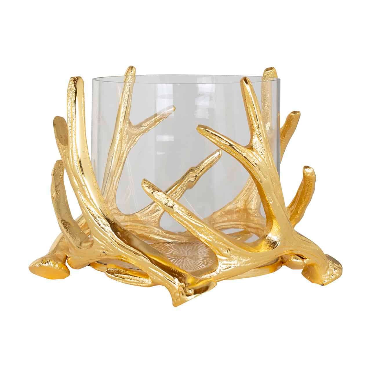 Windlicht Harvey goud met klein gewei (Gold)