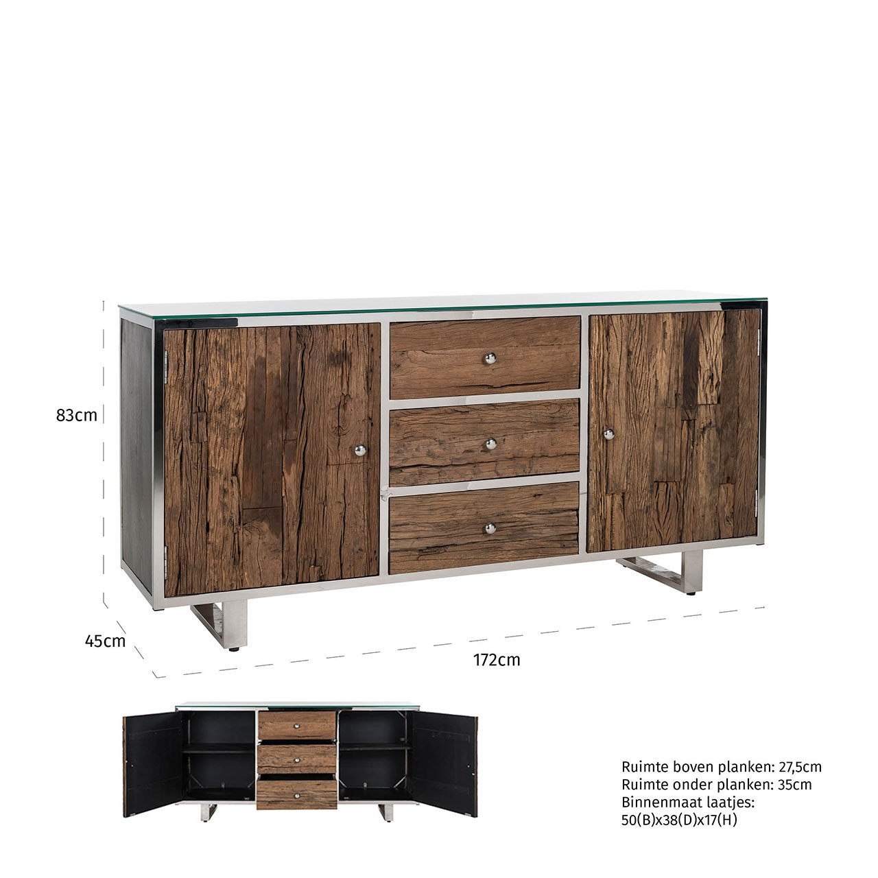 Dressoir Kensington 2-deuren 3-laden incl. glas (Silver)